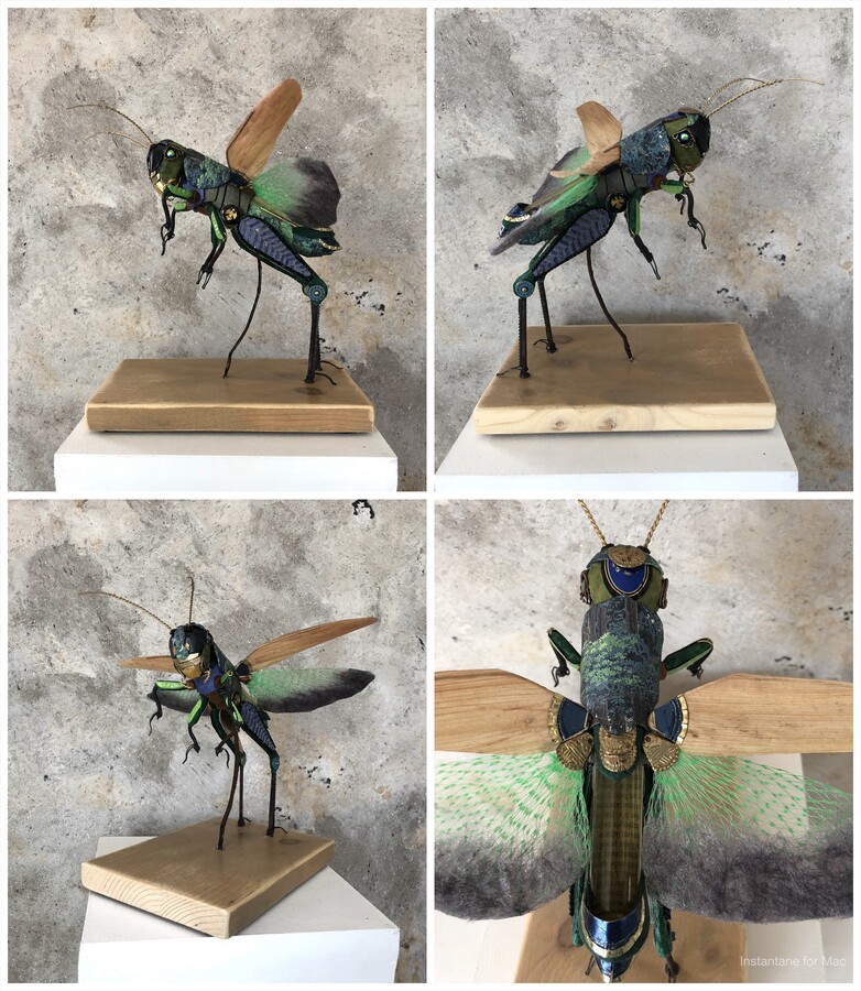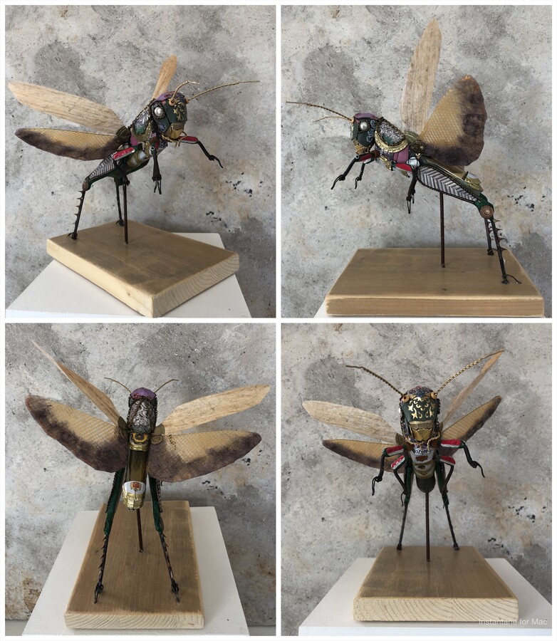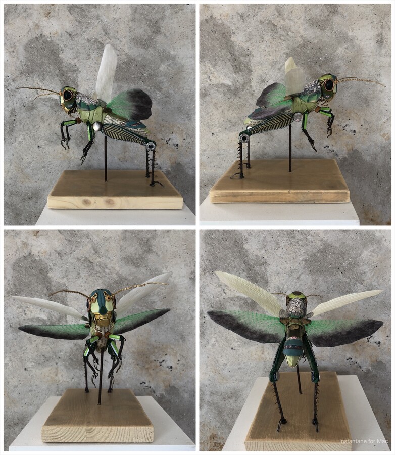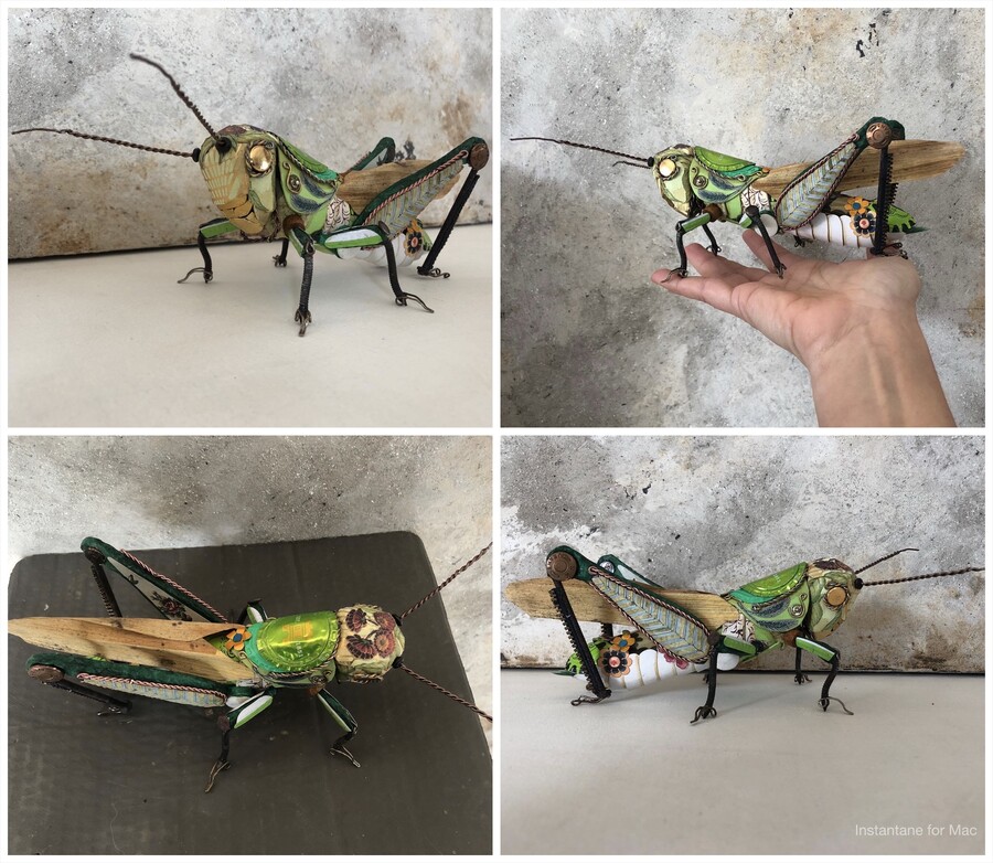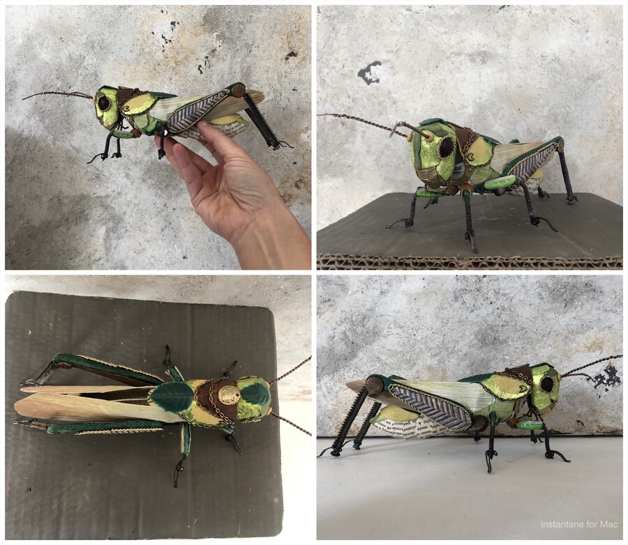 les matériaux de récupération utilisés ici varient d'un insecte à l'autre mais la base est pour tous la même: des bouchons de liège. pour les insectes ailés, les ailes sont fabriquées avec du plastique de bouteille.