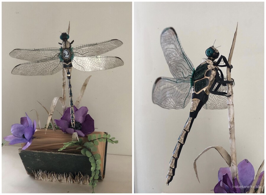 les matériaux de récupération utilisés ici varient d'un insecte à l'autre mais la base est pour tous la même: des bouchons de liège. pour les insectes ailés, les ailes sont fabriquées avec du plastique de bouteille.